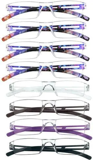 LAMBBAA 8 Pack Reading Glasses, Blue Light Blocking Computer Reading Glasses for Women and Men, Anti Glare Lightweight Readers (4 Color+4 Floral,+2.50)