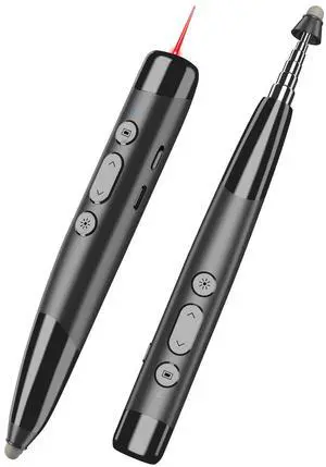 Miritz Clicker for PowerPoint Presentations, Wireless Presenter Remote with Stylus Pen & Telescopic Pointer | Hyperlink, Volume Control | Rechargeable USB for PC, Mac