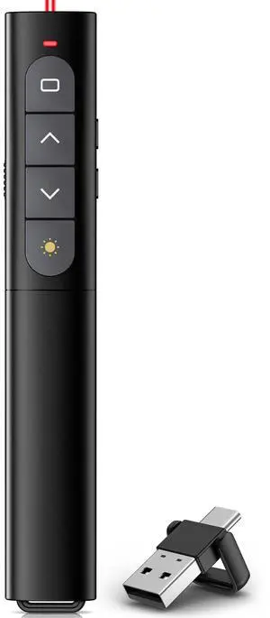 Wireless Presentation Clicker PowerPoint Presenter Remote : USB Type C Clicker with Red Laser Pointer Long Range PPT Control -Power Point Google Slide Advancer for Mac Laptop PC Computer Keynote