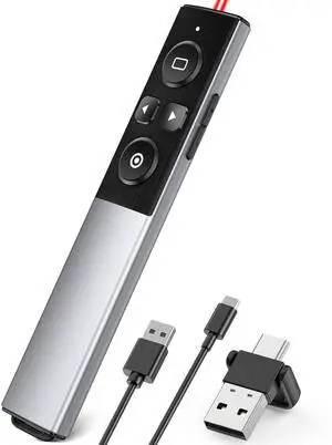 [2 in 1 USB C + Rechargeable] Presentation Clickers, Powerpoint Clicker Wireless Presenter Remote, Presentation Pointer PPT Slideshow Advancer Remote Control Slide USB Clicker for Computer, Mac