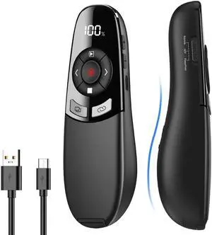 Wireless Presenter Remote Presentation Clicker with 2.4GHz RF Hyperlink & Volume Control, Built-in Rechargeable Battery, Compatible with Keynote, PowerPoint, Mac, PC, and Laptops