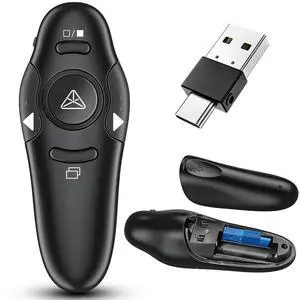 2 in 1 USB Type C Presentation Clicker with Laser Pointer, Wireless Presenter for PowerPoint Presentation PPT Clicker, 2.4GHz Presenter Remote Slide Advancer with Bright Red Laser Pointer
