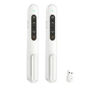 QUI 2 Pack Presentation Clicker, Hyperlink Volume Control Wireless Presenter, RF 2.4GHz USB Presentation Remote Control,PowerPoint Clicker Slide Advancer for Computer, Laptop, Mac (USB, White)