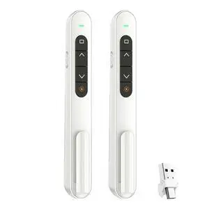 QUI 2 Pack Presentation Clicker, Hyperlink Volume Control Wireless Presenter, RF 2.4GHz USB Presentation Remote Control, PowerPoint Clicker Slide Advancer for Computer, Laptop, Mac (USB Type-c, White)