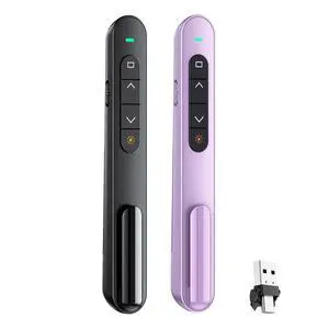 QUI 2 Pack Wireless Presenter Remote, 2.4GHz RF Presentaion Clicker with Hyperlink Volume Control, USB Presentation Remote for Mac, Laptop, Google Slides (USB Type-c, Black Purple)