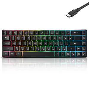 60% Gaming Keyboard and Mouse Combo, 68 Keys Wired LED RGB Backlit Black Gaming Keyboard and RGB Backlit Mouse, Small Light up Keyboard for PC Xbox PS4 (Black)