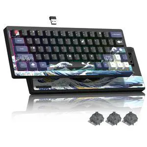 Womier 60% Percent Keyboard Wireless with QMK/VIA, Gaming Keyboard Black, Creamy Mechanical Key Board, RGB Custom Hot Swappable with PBT Keycaps for Windows & Mac-POM Linear Switch (Q61-Kanagawa)