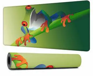 Y YIHANGBEST A Frog Green Branch Mouse Pad for Desk Round Red Eyes Blue Limbs Orange Tinted Feet Large Gaming Mousepad for Home,Office,Computer,Keyboard Mat 35.4"X15.7"