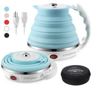 Ultrathin Upgraded Food Grade Silicone Travel Foldable Electric Kettle Boil Dry Protection Portable with Dual Voltage and Separable Power Cord,555ML 110-220V US Plug