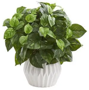 Nearly Natural 6466 16 ft. Pothos Artificial Plant in White Ceramic Vase
