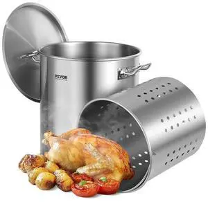 VEVOR Stainless Steel Stockpot, 42 Quart Large Cooking Pots, Cookware Sauce Pot with Strainer, Lid, and Handle, Heavy Duty Commercial Grade Stock Pot, Sanding Treatment, for Large Groups Events Silver