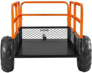 1400 Lbs Steel Garden Cart, Heavy Duty Pullable Garden Wagon Yard Cart, 2 in 1 Outdoor Metal Utility Wagon Yard Trailer with 13" All Terrain Tires, Mesh Removable Sides and 180°Rotating Handle