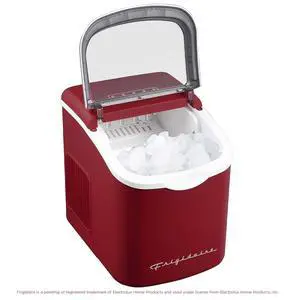 FRIGIDAIRE Retro Compact Ice Maker Machine, Bullet Ice, 26 lb per Day (MerlotRed)