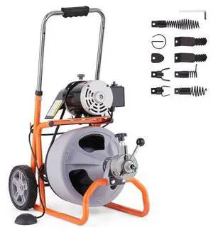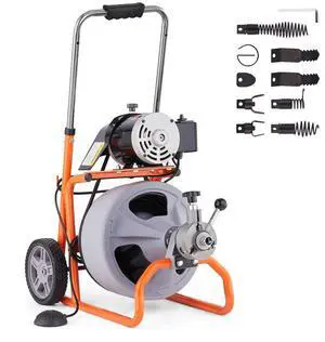 VEVOR Drain Cleaner Machine 100FT x 3/8 Inch Auto Feed with Wheels & 8 Cutters