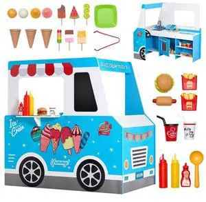 VEVOR Ice Cream Truck Wooden Playset Pretend Play Stand for Kids Aged 3-7