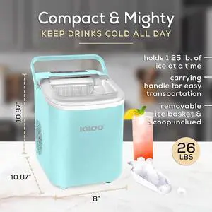 Self-Cleaning Countertop Ice Maker - Compact and Portable - Creates 26 lbs. Per Day, 8 Pieces Ready Every 7-8 Minutes - Includes Ice Scoop and Basket - Stainless Steel Aqua 26 Lb Handle