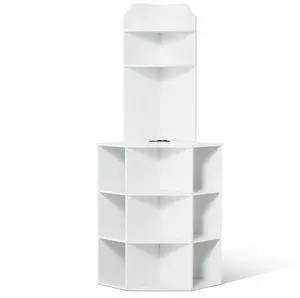 VEVOR 64" Corner Storage Cabinet with Charging Station Adjustable Shelves White