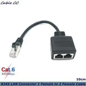 RJ45 Splitter Adapter LAN Connector 1 Female to 2 Female Cable 0.2m Compatible With CAT5 CAT6