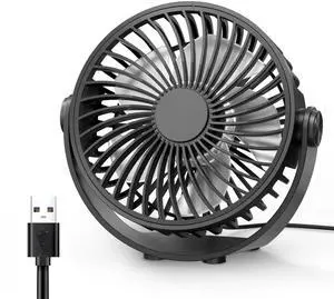 USB Desk Fan, 5 Inch Mini Portable, 3 Speeds Strong Airflow Personal Desktop, Detachable Cooling Fan 360° Rotation Quiet Small Fan for Desk Home Office Travel Car, Black, 5ft Cable