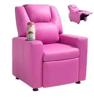VEVOR Kids Reclining Chair, Toddler Recliner with Cup Holder, 101° to 121° Adjustable Backrest, Easy-to-Clean PU Leather Recliner Couch with Footrest, 90 lbs Load, for Boys & Girls, Children (Pink)