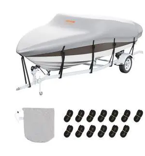 VEVOR Boat Cover, 17'-19' Trailerable Waterproof Boat Cover, 600D Marine Grade PU Oxford, with Motor Cover and Buckle Straps, for V-Hull, Tri-Hull, Runabout, Bass Boat, Fish Ski Boat, Grey