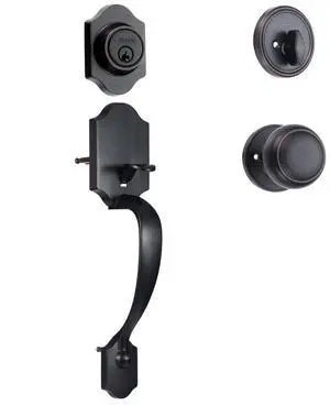VEVOR Front Door Handle and Deadbolt Set, Antique Copper Front Door Lock Set with Interior Knob, Adjustable Hole Spacing Single Cylinder Handleset, for Right and Left Handed Entrance and Front Door