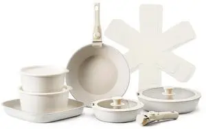17 Piece Pots and Pans Set Nonstick, Detachable Handle Cookware, Space Saving Induction cookware set, Kitchen RV Cooking Sets, with Frying, Sauce, Saute, Tempered Glass Lids, Oven Safe, White