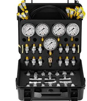 VEVOR Hydraulic Pressure Test Kit, 10/100/250/400/600bar, 5 Gauges 13 Couplings 14 Tee Connectors 5 Test Hoses, Excavator Hydraulic Test Gauge Set with Carrying Case for Excavator Tractors Machinery