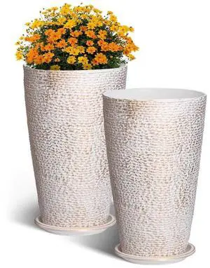 VEVOR Tall Planter Set of 2 Round Tapered Plant Pots 21 in for Outdoor Indoor