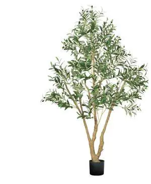 VEVOR 6FT Artificial Olive Tree Tall Fake Plant with Black Pot for Home Office