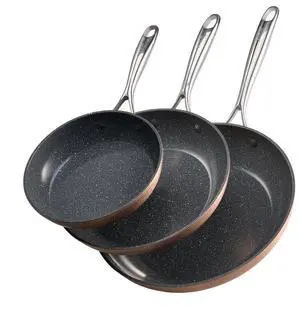 VEVOR 3 Piece Frying Pan Aluminum Skillet Set 8 10 12 in Handle Pre-Seasoned Grey