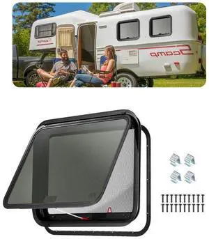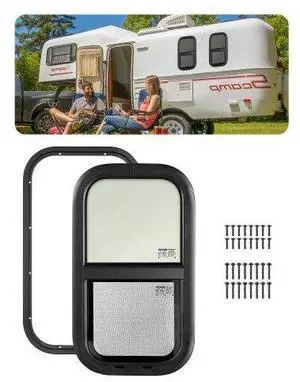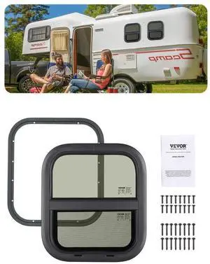 VEVOR Vertical RV Window 14" W x 16" H Tinted Sliding RV Window & Net Screen Trim Ring