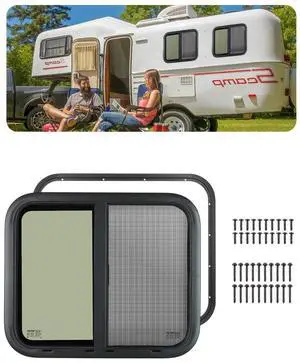 VEVOR Horizontal RV Window 24"W x 20"H Tinted Sliding RV Window & Net Screen Trim Ring