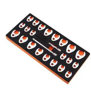 VEVOR 3/8" Drive Crowfoot Wrench Set with 2 Extension Bars, 24-Piece Crows Foot Wrench Set, SAE 3/8"-1" and Metric 10-22 mm, CR-MO Steel Crowfoot Wrench Set, with EVA Tool Organizer