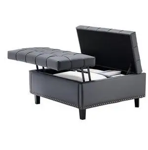 VEVOR 31-34 in Square Leather Ottoman with Storage Coffee Table for Living Room Grey