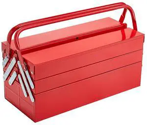 Tool Box 18-inch 3-Tier 5-Tray Folding Cantilever Toolbox with Handle Red