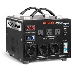 VEVOR Voltage Converter Transformer 6000VA Step Up/Down 110 to 220V/220 to 110V