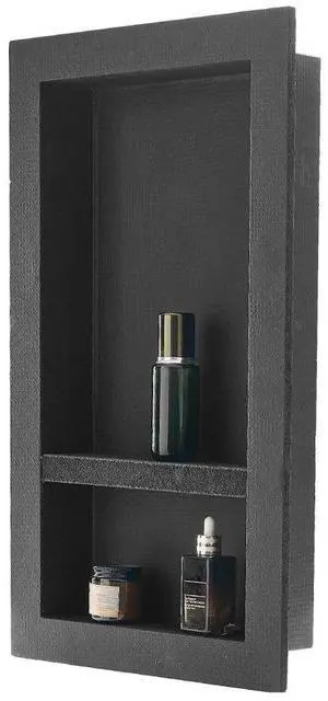 VEVOR Shower Niche Ready for Tile 16" x 24", Double Shelf Organizer, Square Corners Wall-inserted Niche Recessed, Sealed Protection Modern Soap Storage Niche for Shower Bathroom, Black