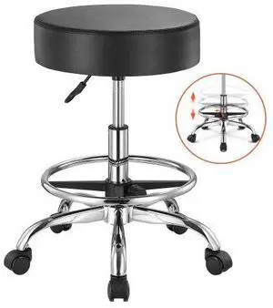 VEVOR Round Rolling Stool Swivel Stool with Wheels & Footrest Height Adjustable