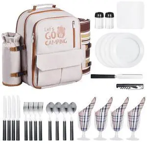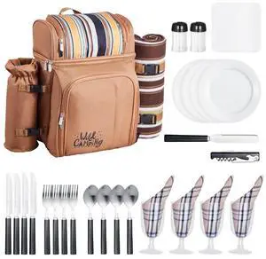 VEVOR Beach Picnic Backpack Bag for 4 Person with Cooler Compartment Brown