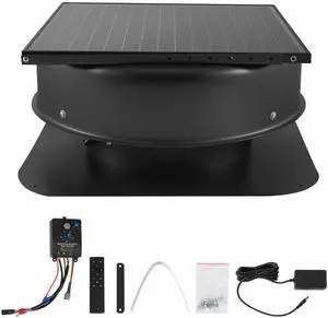 Roof Attic Exhaust Fan, 50W Smart Solar Roof Ventilation Fan with Thermostat, Remote Control, 3000 CFM Airflow Built-in Smoke Sensor with Auto Stop for Cooling and Dehumidification