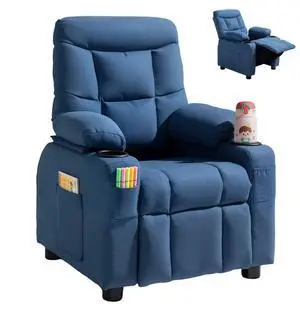 VEVOR Kids Reclining Chair, Toddler Recliner with Cup Holders and Pockets, 107° to 126° Adjustable Backrest, Breathable Polyester Fabric Recliner Couch with Footrest, for Boys & Girls, Children(Blue)