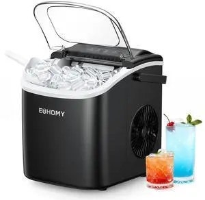 Countertop Ice Maker, Portable, Self-Cleaning, 9 Bullet Ice Cubes in 6 Mins, 26lbs/24Hrs, Ice Maker Machine with Ice Bags, Handle, Standing Scoop and Basket, Black