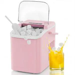 Ice Makers Countertop with Handle, Portable Ice Machine, 9 Bullet Ice Cubes in 6 Mins, 26lbs in 24Hrs, Auto-Cleaning, with Basket and Scoop, for Home, Kitchen, RV, Camping,Light Pink- Brand: NEWBULIG