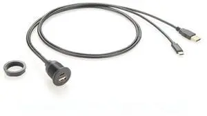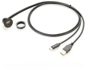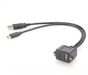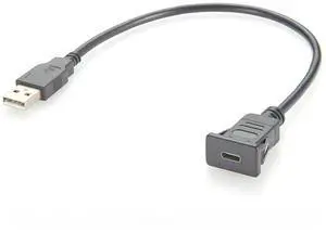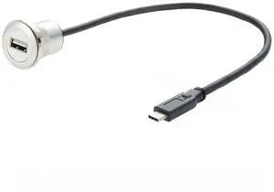 Generic USB 3.1 C Male to USB 2.0 A Female Extension Cable Flush Panel Mount USB Embedded Threaded Cable for Charging & Data