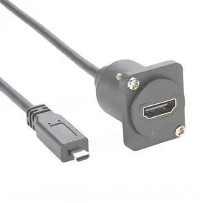 Generic D Type HDMI Female to Micro HDMI Male Extension Cable 4K@30Hz Chassis Flange Panel Mount for Raspberry Pi, TV, Monitor