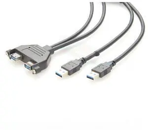 Generic Dual Ports USB 3.0 Screw Panel Mount Extension Cable Type A Male to Female Flange Chassis Cable 5Gbps Data Transfer for Car