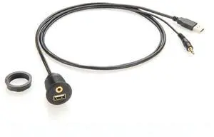 Generic USB & 3.5mm Male to USB & 3.5mm Female Flush Mount Panel Mount Extension AUX Cable Round Panel Mount 3.5mm&USB 2.0 Jack Cable