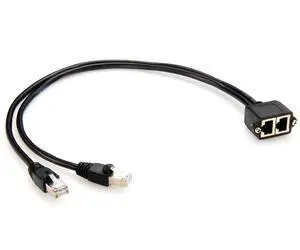 Generic Dual Ports RJ45 Cat5e Male to Female Extension Cable Combined RJ45 8P8C LAN Ethernet Network Screw Panel Flange Chassis Cable