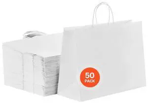 Kraft Paper Bags with Handles 50Pcs 16x6x12 in Party Shopping Retail Bag White